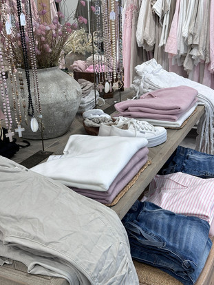 Paras valikoima vaatteita löytyy aina kivijalkamyymälöistämme, mutta pyrimme päivittämään tuotteitamme myös verkkoon. Asiointi putiikeilla on ihana elämys ja silloin pääset tutustumaan runsaaseen valikoimaamme sekä nauttimaan seesteisestä tunnelmasta. Haluamme auttaa sinua löytämään ajattoman kokonaisuuden, josta nautit pitkään.